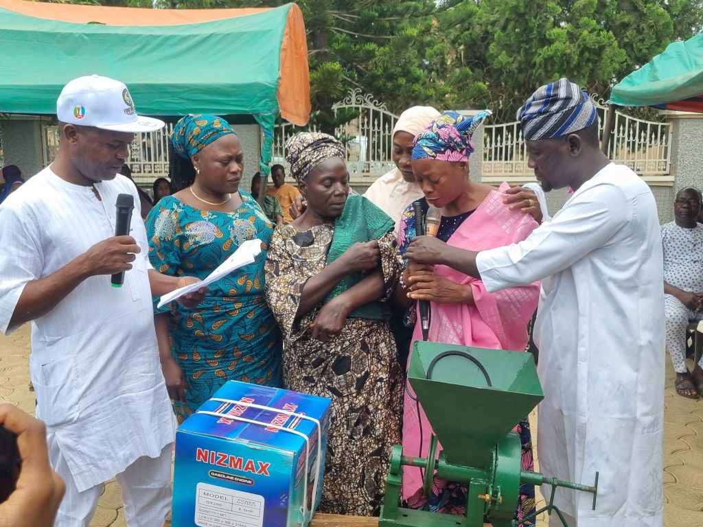 Hon. Kareem Tajudeen Abisodun, the federal lawmaker representing Saki West, Saki East, and ATISBO Federal Constituency at the House of Representatives, has reaffirmed his commitment to grassroots empowerment by distributing 100 grinding machines to women in his constituency.