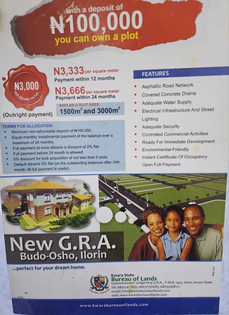 The brochure was beautiful. Glossy, confident, and full of promise, it showed smiling families against a backdrop of well-paved roads, lush landscaping, and elegant homes. “With a deposit of ₦100,000, you can own a plot,” it declared in bold red letters. Beneath that headline was a list of guarantees that would make any aspiring homeowner’s heart race: asphaltic road networks, covered concrete drains, adequate water supply, electrical infrastructure, street lighting, adequate security, and an estate described as “ready for immediate development” and “environmentally friendly.” The Kwara State Government was selling more than land. It was selling a lifestyle.