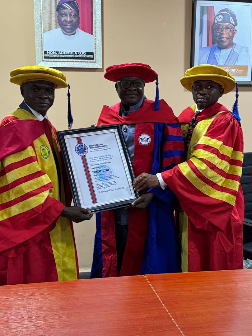 Oyo State Commissioner for Trade, Investment and Cooperatives, Hon. Adeniyi Adebisi Olabode, has been officially inducted as an Eminent Fellow of the Chartered Institute of Public Administration and Governance, USA, marking another milestone in his public service career.