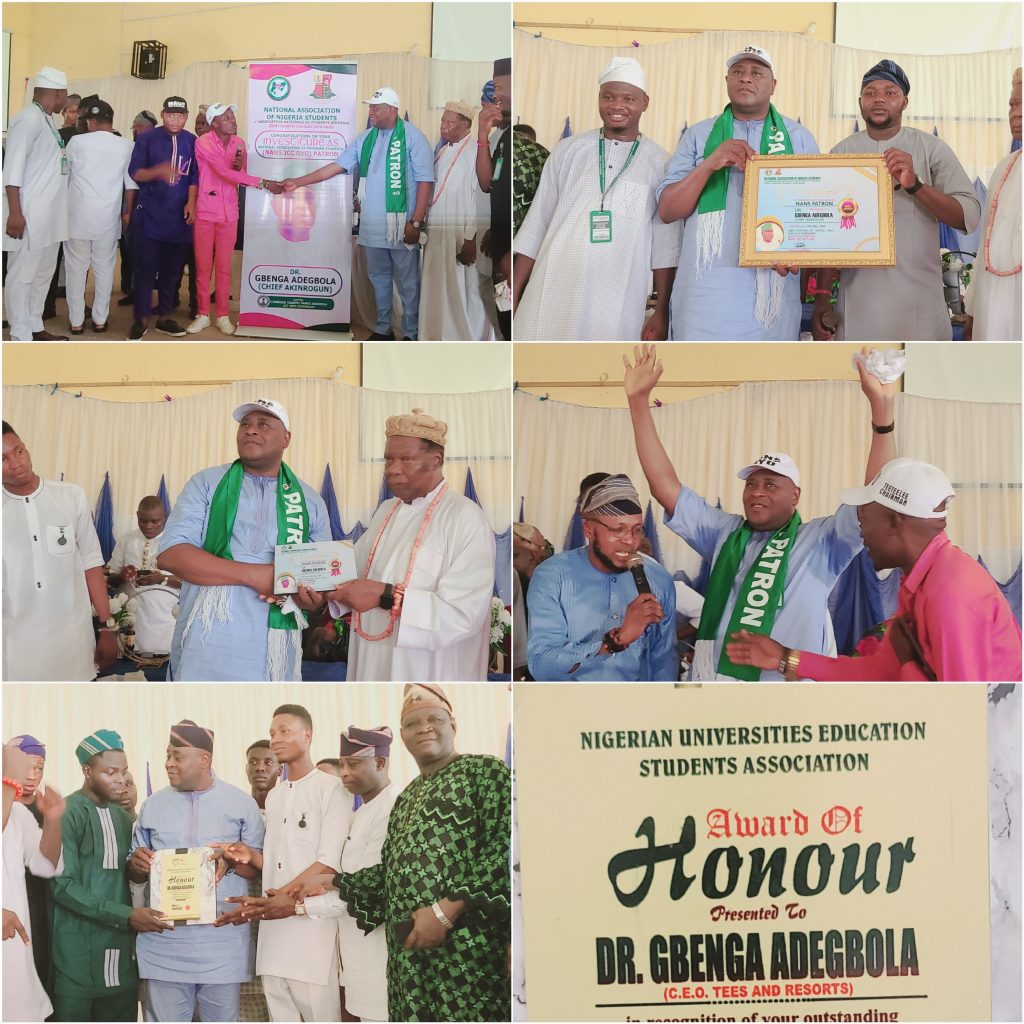 Further solidifying his standing within academic and youth circles, Dr. Adegbola was conferred with an Award of Honour by the National Universities Education Students Association (NUESA), presented by its national leader, Senator Adeniyi Makinde. The award, which recognized his “exceptional contributions to education and youth advocacy,” was followed by an even more symbolic gesture.